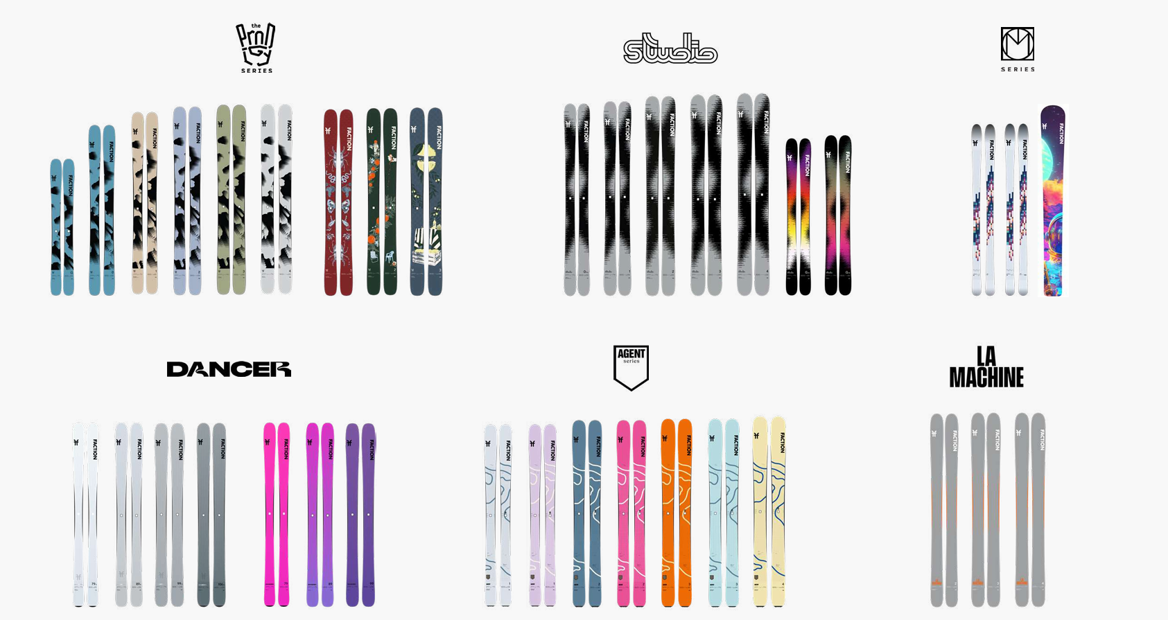 24-25シーズンにカテゴリー変更を行って、ラインナップがより分かりやすくなったFACTION SKI FREERIDEなDANCER もう少しEASY&TOURなAGENT パークからFREERIDEまで万人にオススメなPRODIGYPIPE、PARKのスペシャリスト向けのSTUDIOにMANAが組み込まれてFREERIDEでの高ポテンシャルも実現!