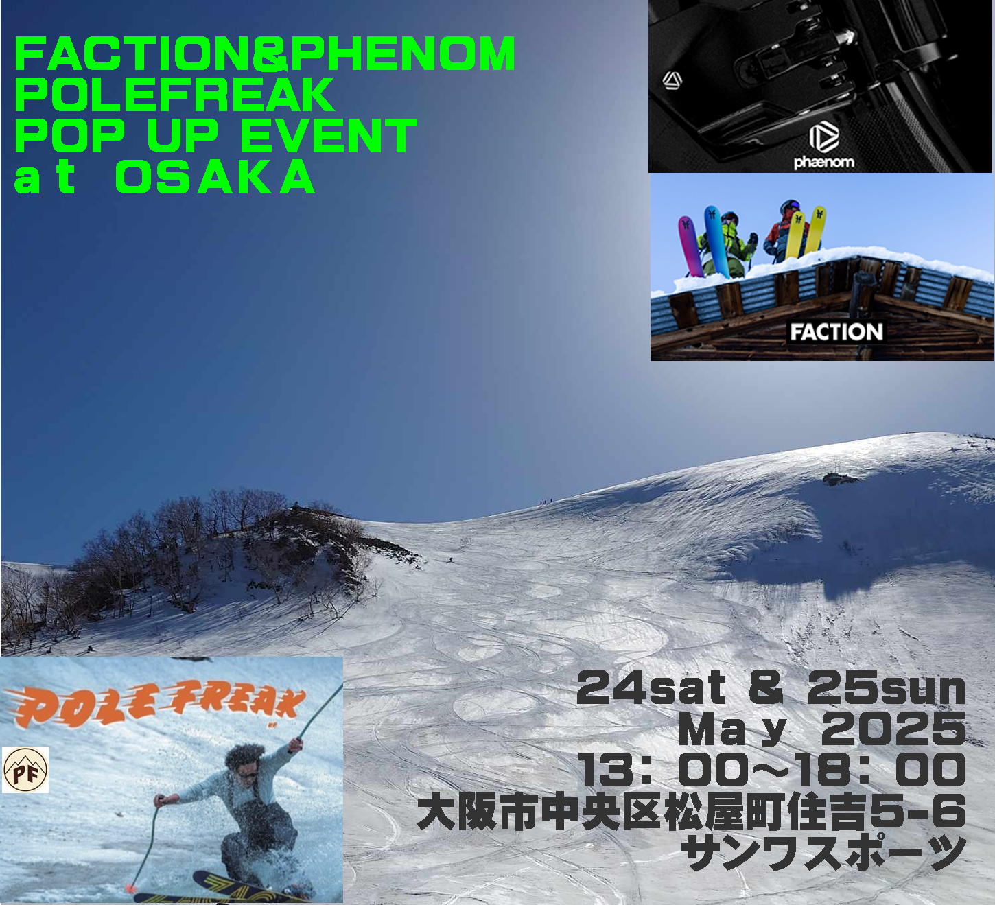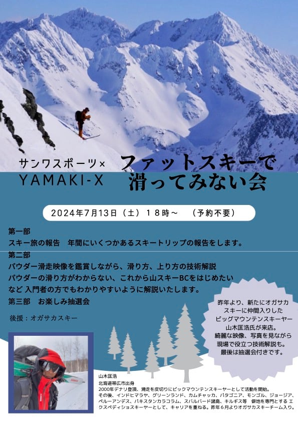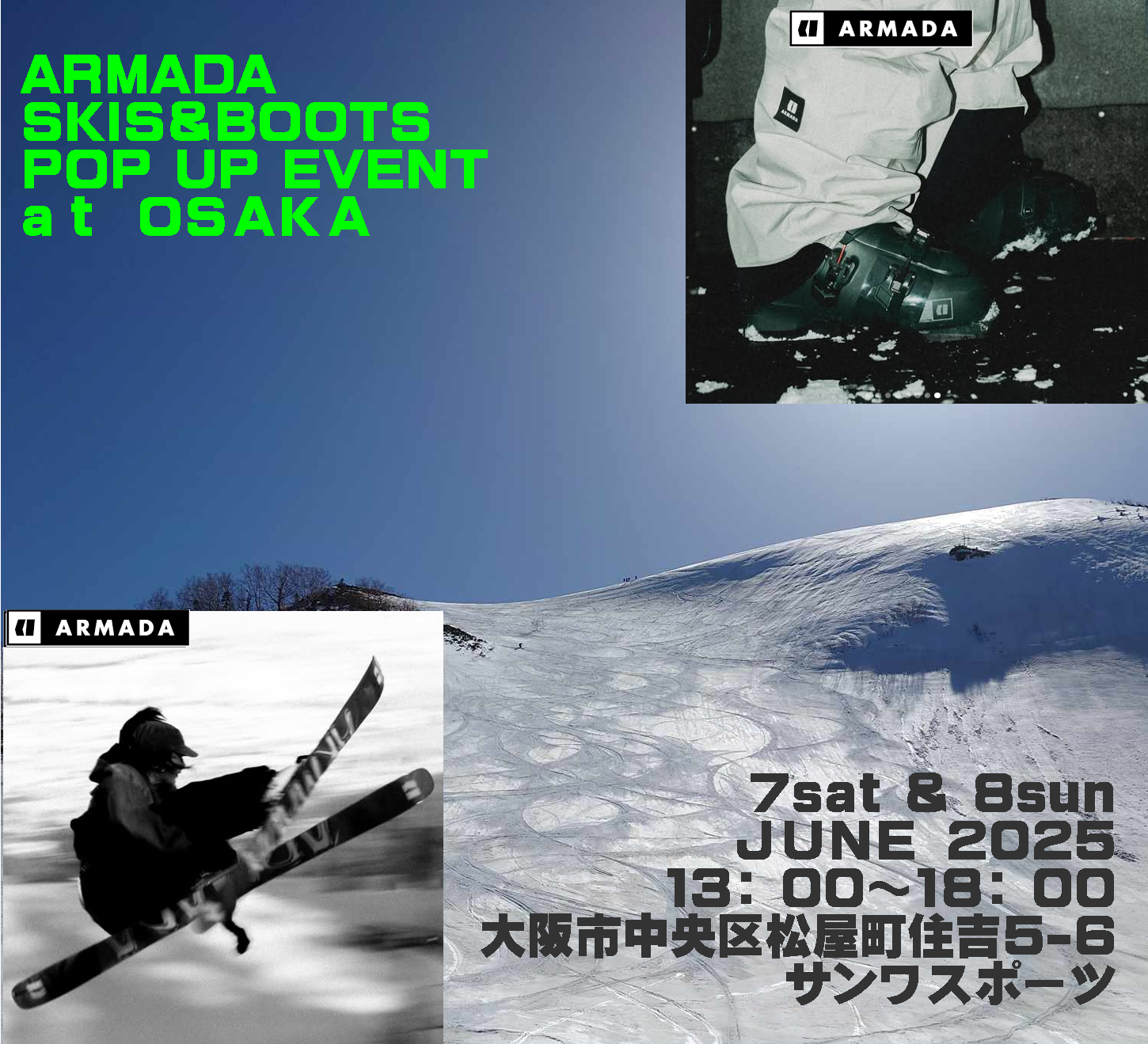 今年も3週にわけて、SKI 4ブランド BOOTS 2ブランド BINDING 1ブランド WEAR 2ブランド POLE 1ブランド(未定)の合計8ブランド(ARMADAがSKIとBOOTSかぶっているので…)で開催します!
